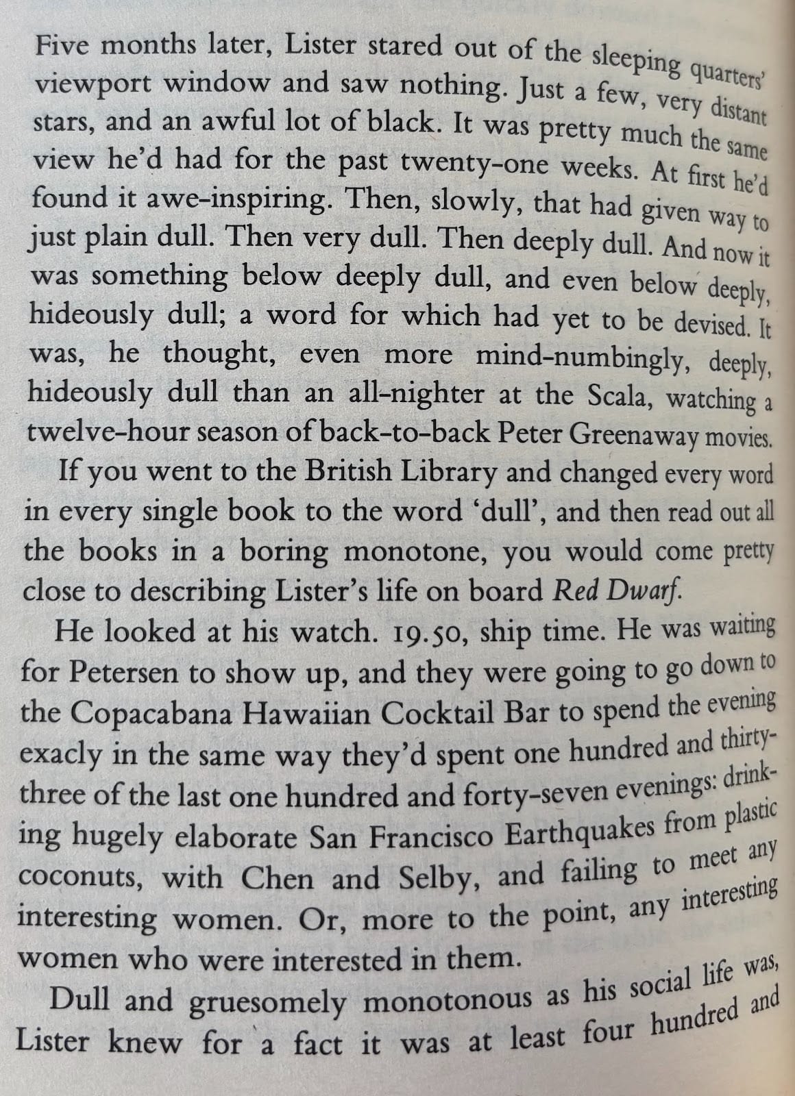 Sometimes it’s hard to parse the timeline of events from before you were born. In between 2001 and Star Wars lay both Silent Running and Dark Star, and Red Dwarf primed me for both. I would rediscover Alien a few years later. Never mind the awful hotel-like fixtures of The Next Generation; it’s not really space without boiler suits and dull corridors. Maybe it’s a wonder, but maybe it’s also a fuckin’ job.