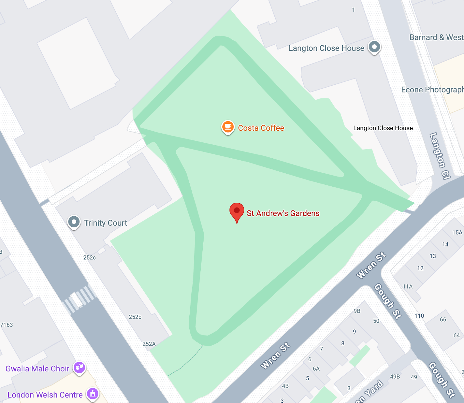 I sit in St Andrew’s Gardens again, noting the imposing housing blocks and cranes that surround it. Victorian housing on the south side being driven into retreat by brutalist overtures. There have been no burials since 1850 and the scattered graves are bleached and anonymous from years of acid rain and the traffic of Gray’s Inn Road.