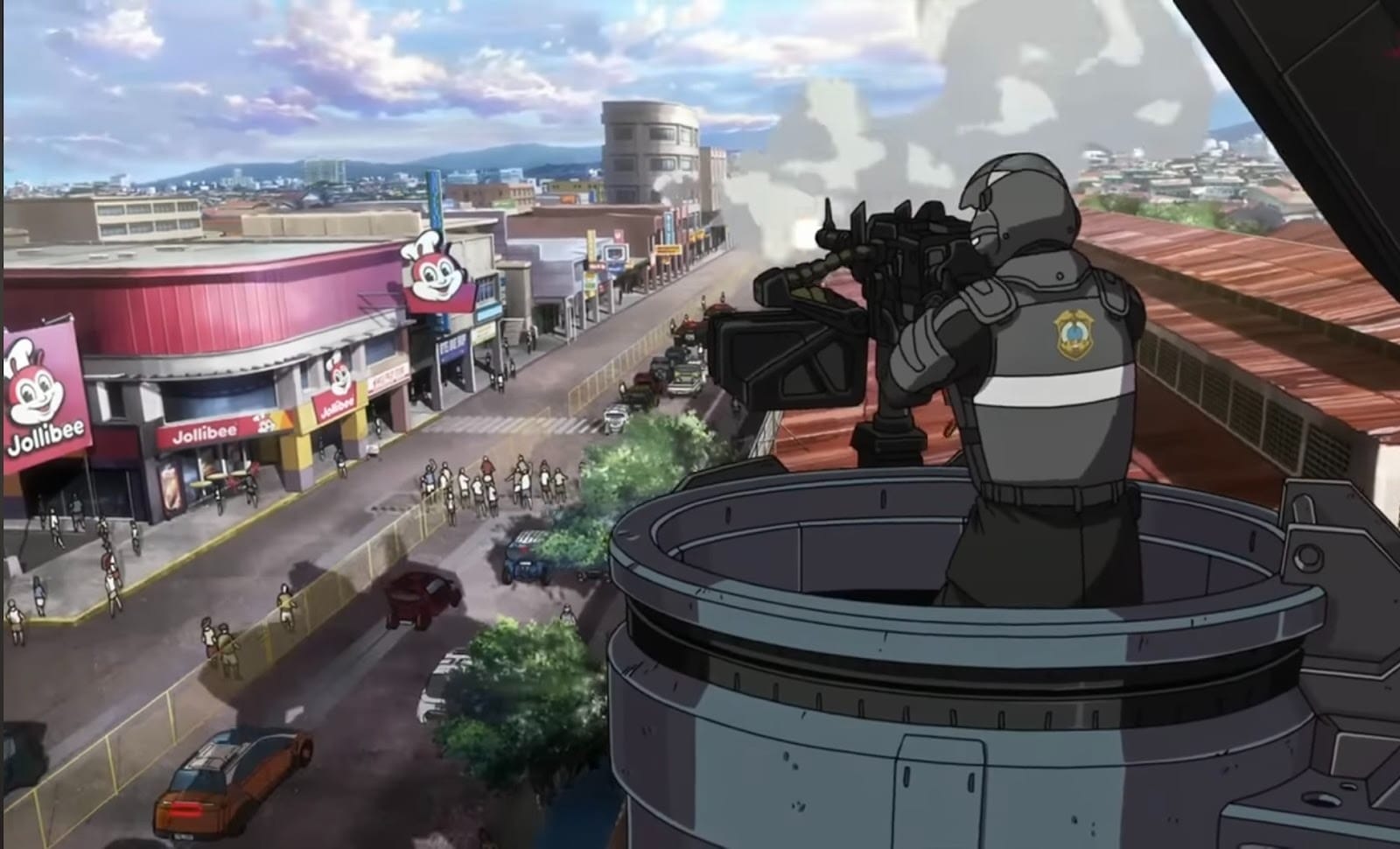 Part two of the adaptation drops this month. Like many, I only know of the novel trilogy’s shocking ending. In between the robot fights, continuing the tradition of showing civilians being mowed down by careless actions, the most lingering scenes are the crackdowns. Government stooges called Manhunters search for people without paperwork to deport. Shopkeepers look away, worrying and complaining. A turreted robot zips the scenery with gunfire.
