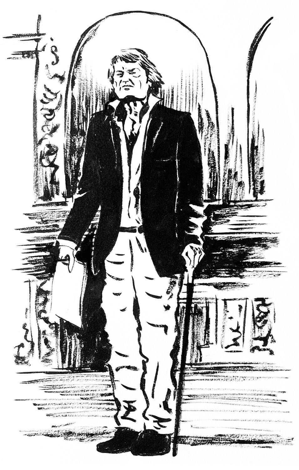 Dun appears like a rumpled bohemian, Cliff Richard’s Heathcliff as played by Daniel Day Lewis. He wears a Madonna mic and exhales in alarming, yogic sighs. Saint Pancras, we learn, was a child martyr, and there is something Peter Pan-like about Dun, still handsome in his (I’m guessing?) early 70s. He mentions his youth in the West Indies, and that he was ‘inducted into the mysteries of King’s Cross’ on the cold floorboards of a squat in 1972.