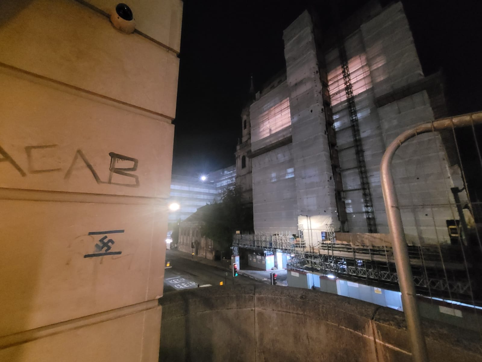 Wren’s steeple looms beyond sight, and here is an instant shift inside the outer gate. Not the manic desolation of the City at night, or the low pull of the river’s edge, or the familiar, talcum thinness of church air, worn clear through prayer. None of those. A bad feeling. Like something covering its eyes to make itself invisible. And I nearly don’t see it, the faint white marks swallowed up by the LED glare from the faux Victorian hanging lamp.