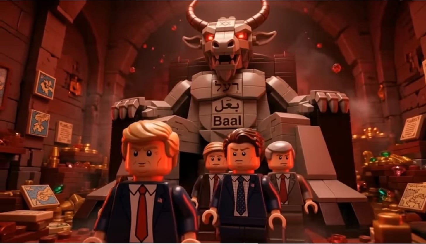 The detail in some of these is very effective and deep… digestible - I am trying to work out the Easter eggs like Baal statues in the background with Trump and Netanyahu.