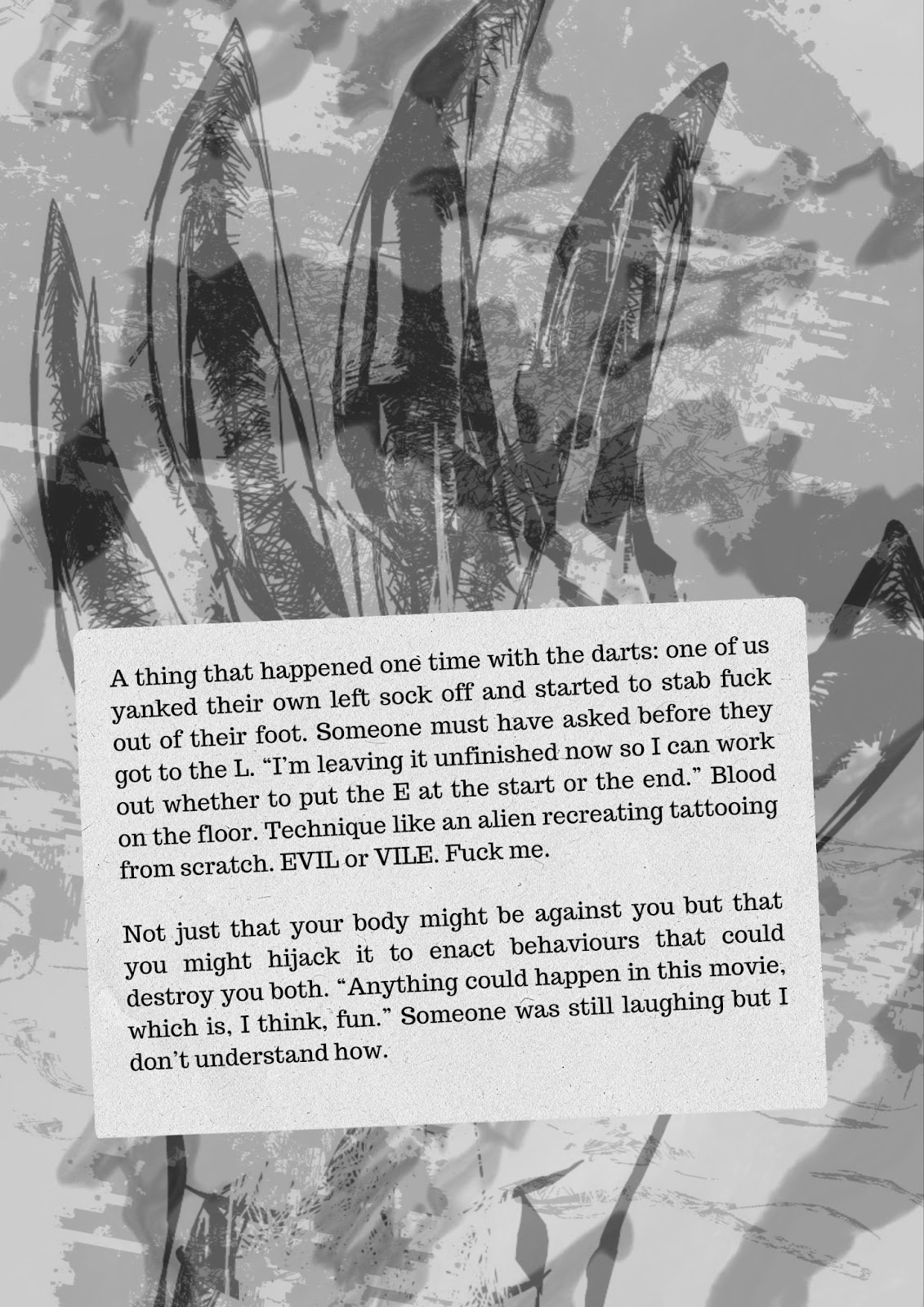 We move into a police house. I’m schooled to pretend my dad is a fireman. You never say police. Long flat gardens, separated by wire and stakes. The slap of washing in the wind.