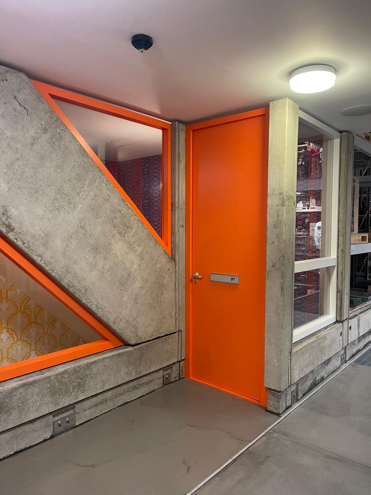 As well as the concrete façade, a front door and entrance lobby were salvaged. Behind them, a small gallery with a film about the building and its residents, telling a complex story before reminding us it has now been replaced by for-sale housing. A lot is left unsaid however.