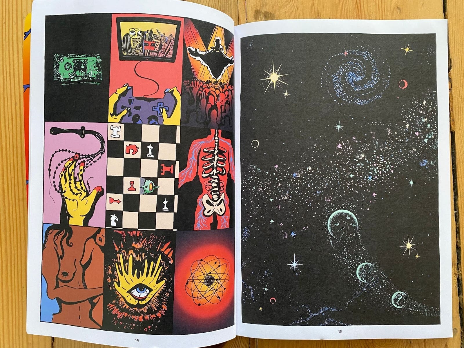 Angular, fractured explosive images; deep black voids of shadow; perfect sinuous linework; grotesque body-horror distortions. Whole sideways worlds conceived routinely, bringing toxic-hued joy and terror to suburban bedrooms.