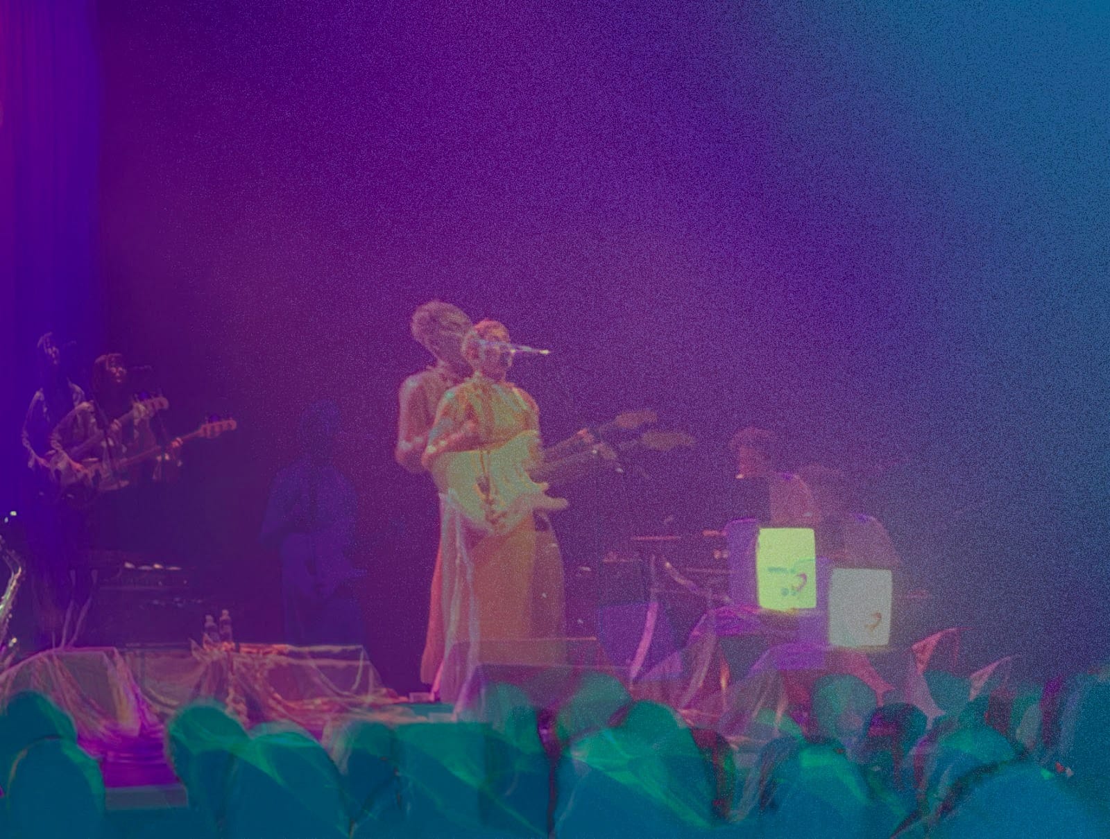 Live, it comes thrillingly, well, alive (if you’ll pardon the comparison, in a way that Del Toro’s flaccid turkey never does). Le Bon’s compositions sound full-bodied and organic in the hands of her multi-instrumentalist band. There’s an amusing moment when a roadie picks up a sax from the keyboard player/saxophonist stage right, then pops up as if in a cartoon seconds later to deliver it to the guitarist/saxophonist/glockenspiel player stage left. The songs throb with off-kilter details that threaten to phase out of time yet never quite do (like the way early Happy Mondays records sound like every band member is playing a different song).